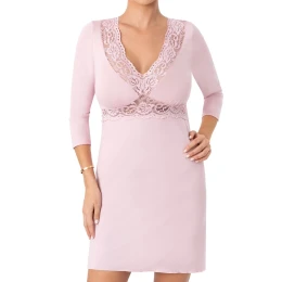 Dámská noční košilka Margo pink Donna - růžová barva - z vysoce jakostní viskózy - tříčtvrteční rukávy - krajkový dekolt