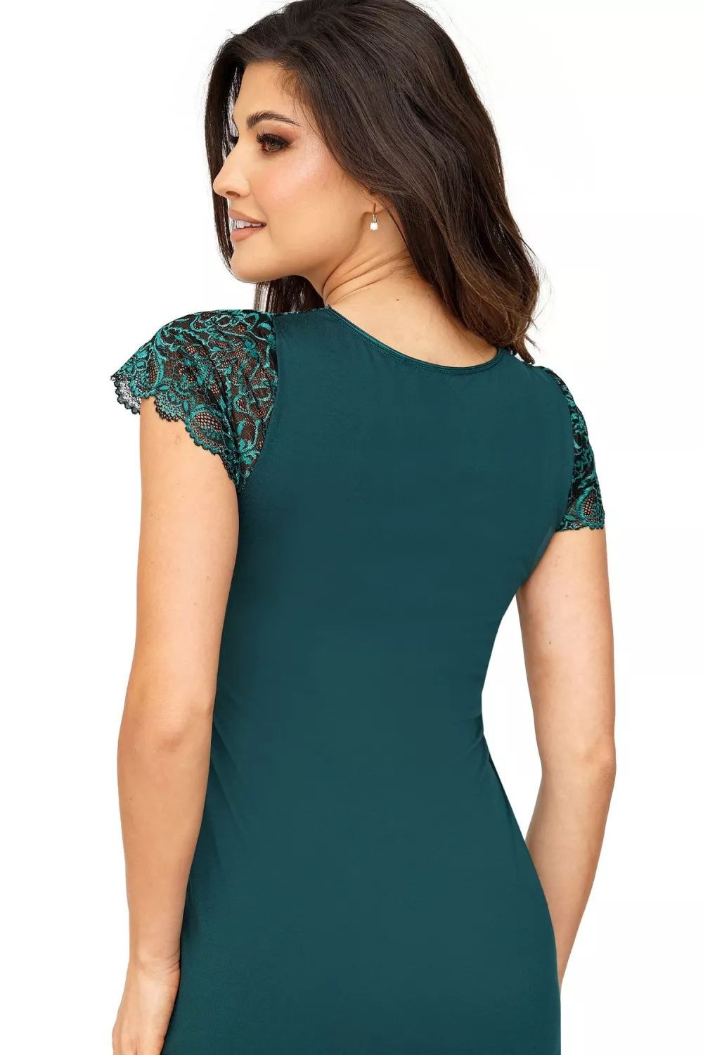 Dámská noční košilka Melania green Donna - zelená barva - z vysoce jakostní viskózy - krátké krajkové rukávy - krajkový výstřih do V - pod prsy stažená