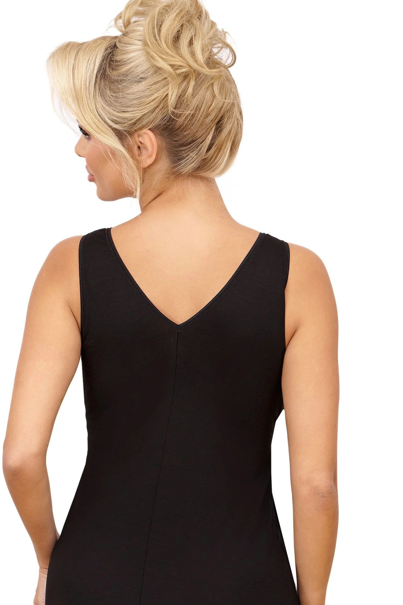 Dámská noční košilka Silvana black Donna - černá barva - z vysoce jakostní viskózy - široká ramínka - horní část zakončená krajkou - pod prsy z elastického materiálu