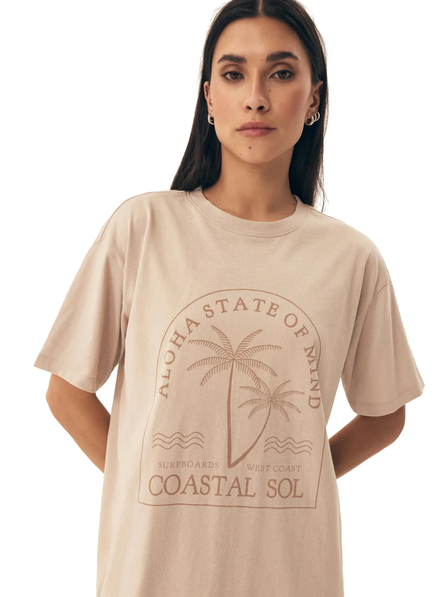 Dámská noční košilka 42671 Nules HENDERSON - béžová barva - z vysoce jakostní bavlny - krátké rukávy - zdobené potiskem na přední straně - rozparek na spodní části