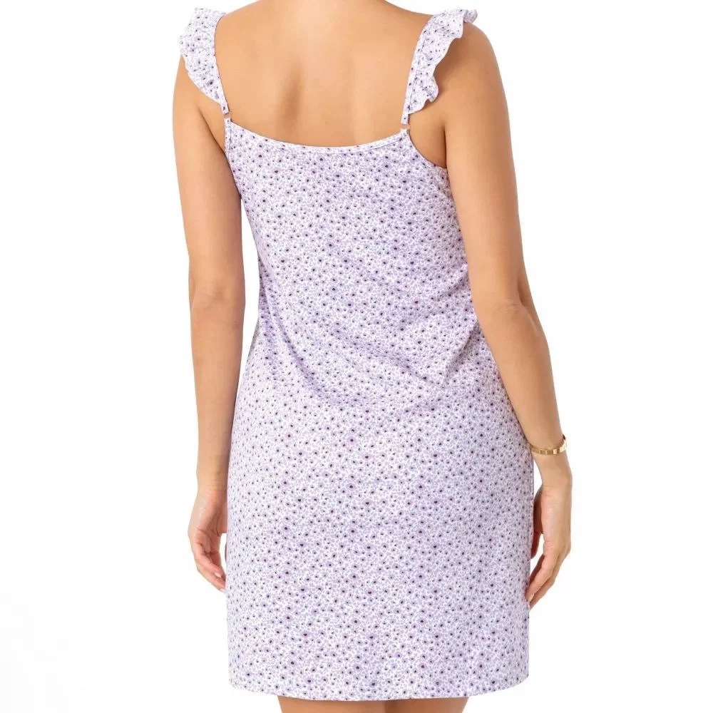 Dámská noční košilka Fiorella Donna - fialová barva - z vysoce jakostní bavlny - se vzorem - výstřih do tvaru V - ozdobná ramínka - volnější střih