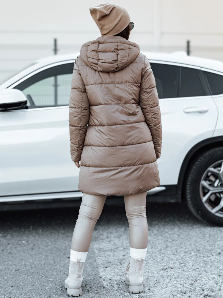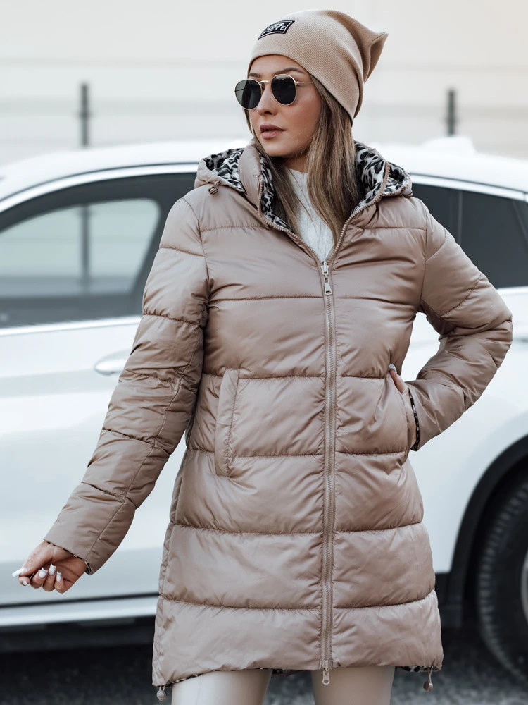 Dámská oboustranná bunda PURRBREEZ dlouhá prošívaná bunda s kapucí camel FashionStreet TY4660