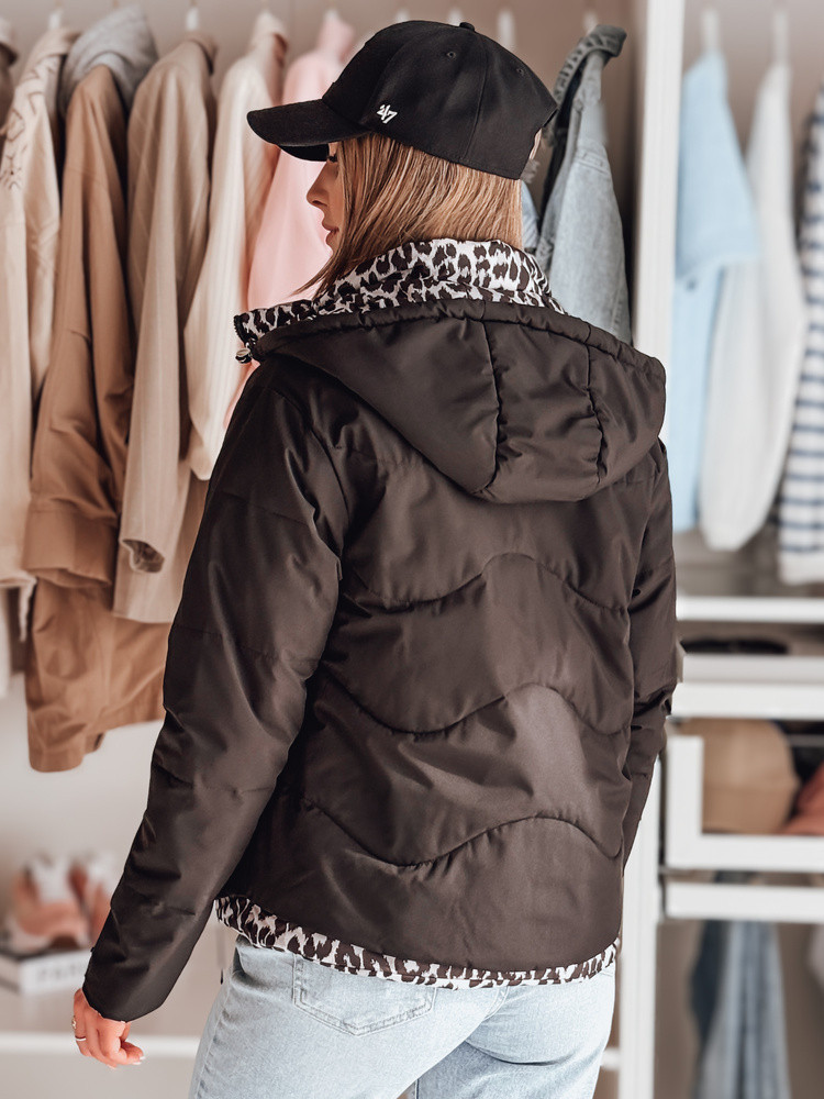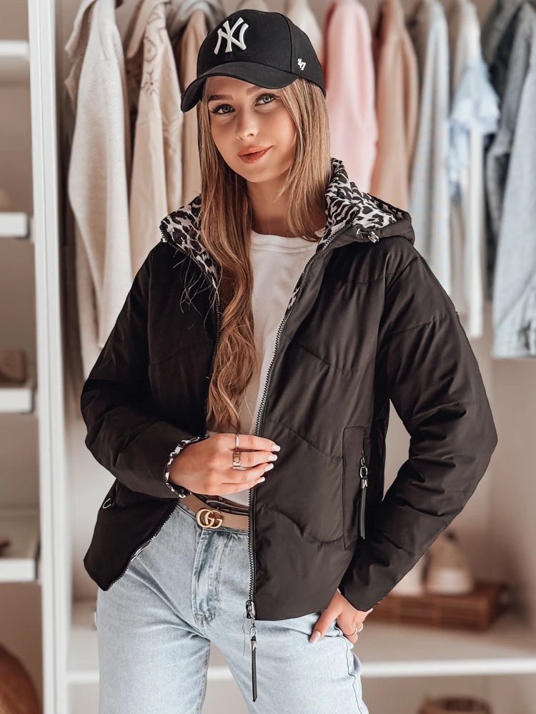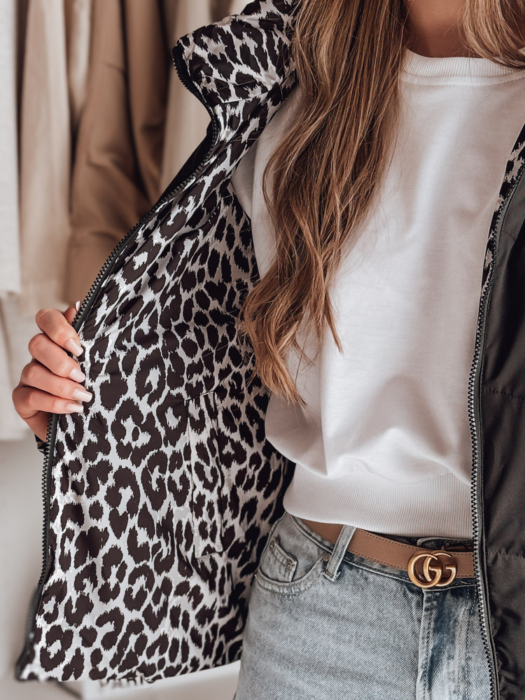 Tato oboustranná přechodná bunda je ideálním řešením pro milovnice proměnlivého stylu. Jedna strana je hladká, druhá s výrazným zvířecím vzorem pro všestrannost. Je vybavena kapsami na zip, neodnímatelnou kapucí a lehkým polstrováním. Ideální pro jarní dny, kdy záleží na stylu a pohodlí.