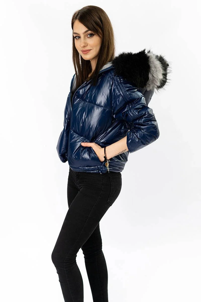 Přidání recenze k Dámská oboustranná tmavě modrá a šedá bunda (b9555)