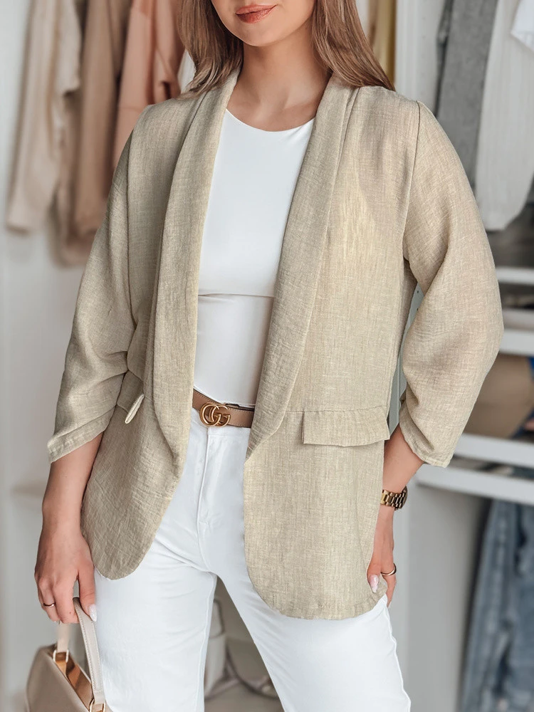 Toto stylové dámské oversize sako volného střihu je ideální pro jarní dny. Je vyrobeno z lehkého materiálu a poskytuje pohodlí a volnost pohybu. Ozdobné klopy imitující kapsy na přední straně dodávají elegantní nádech a originální rukávy vytvářejí jedinečný vzhled, který snadno zapadne do jarních trendů. Univerzální velikost se hodí od XS do L. Ideální pro teplejší dny.