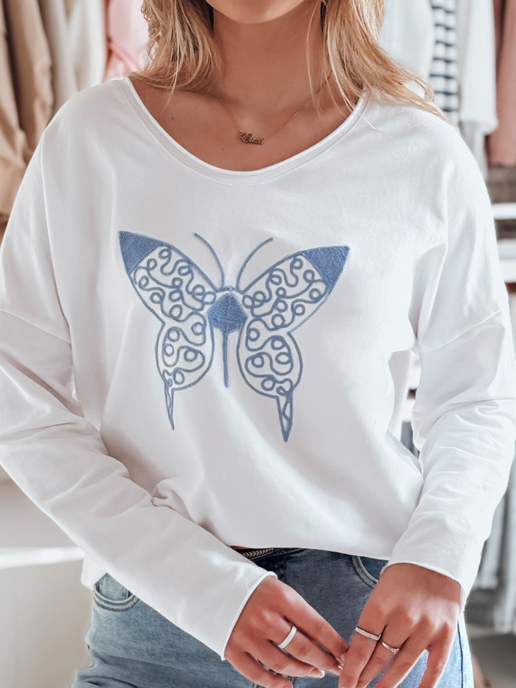 One size halenka s dlouhými rukávy a originálním 3D detailem motýla. Oversize střih pro pohodlí a snadný pohyb. Jemný motýlí vzor pro trendy vzhled. Univerzální velikost padne od XS do L. Ideální pro každodenní nošení, hodí se k mnoha outfitům, sportovním i ležérním.