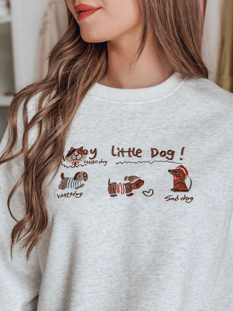 Dámská oversize mikina s vyšívaným potiskem jezevčíků a nápisem "Happy Little Dog" je kombinací pohodlí a šarmu. Univerzální velikost padne od XS do L. Přes hlavu, žebrované manžety a spodní lem. Kulatý výstřih a měkký, na dotek příjemný materiál zajistí pohodlí po celý den. Ideální na jaro pro milovnice ležérního, volného oblečení s nádechem humoru.
