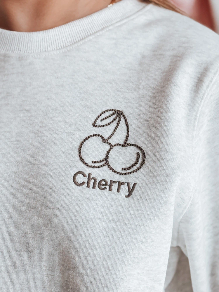 Klasická mikina s moderním nádechem - model oversize vytvořený pro pohodlí a módní vzhled. Měkká, na dotek příjemná prémiová tkanina obepíná pokožku a zajišťuje maximální pohodlí. Vyšívané třešně a nápis "Cherry" dodávají mikině jemný šarm, zatímco elastické žebrované lemy na rukávech a spodním okraji zajišťují dokonalé přizpůsobení. Je to ideální volba pro každodenní nošení.
