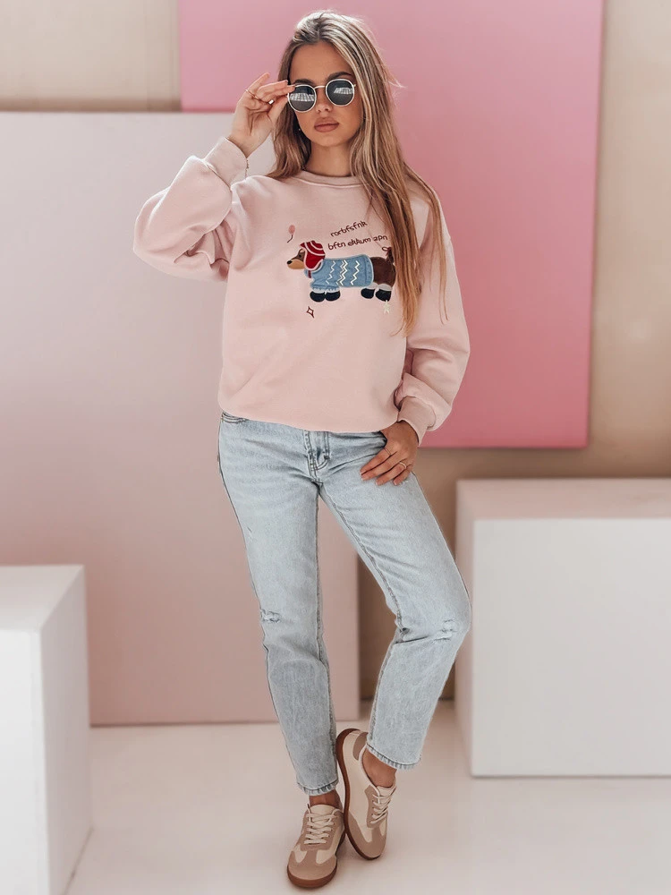 Dámská oversize mikina s výšivkou DOGSWEETY růžová FashionStreet BY1482