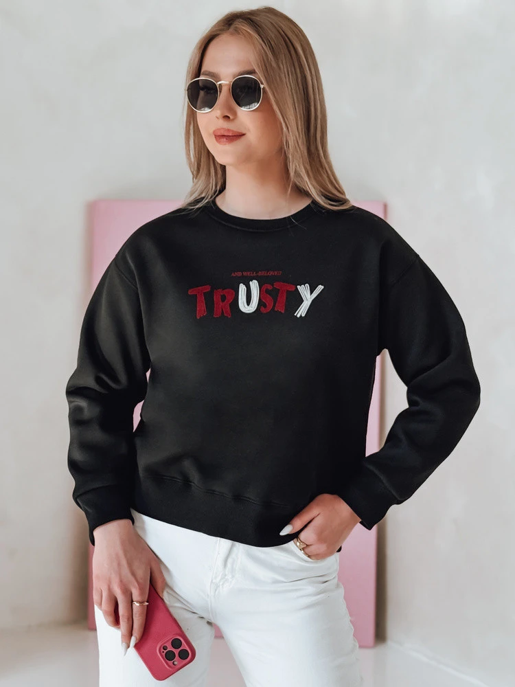 Dámská oversize mikina s ozdobným nápisem "TRUSTY" ve 3D efektu je skvělou volbou pro milovnice pohodlného, ale stylového oblečení. Model je vyroben z měkkého materiálu, který poskytuje pohodlí, zatímco elastické manžety zabraňují ztrátě střihu. Univerzální velikost padne od XS do L. Vyšívaná písmena s různými strukturami vytvářejí vizuálně zajímavý kontrast. Skvěle se hodí pro ležérní jarní kombinace.