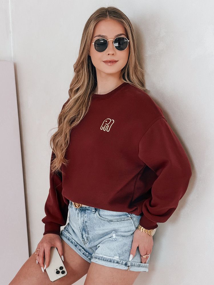 Dámská oversize mikina s výšivkou SOFTSLON vínová FashionStreet BY1430