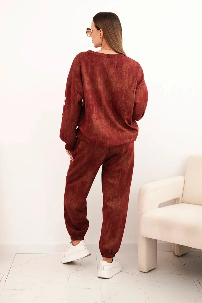 Dámská oversize souprava z viskózy s efektem praní bordová