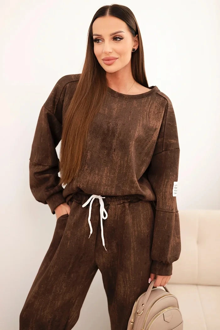 Dámská oversize souprava z viskózy s efektem vyblednutí hnědá