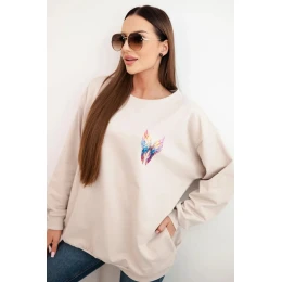 Dámská oversized mikina z bavlny s barevnými křídly na zádech béžová