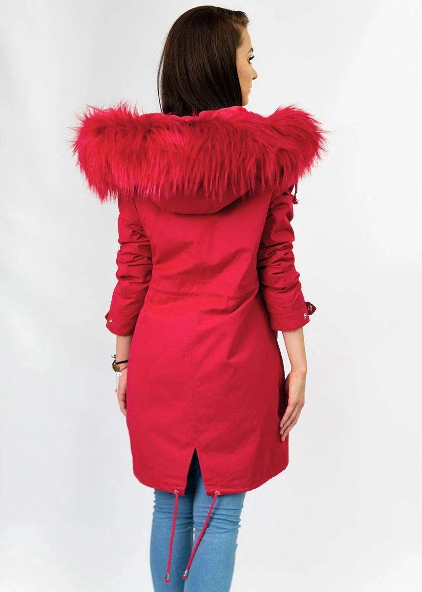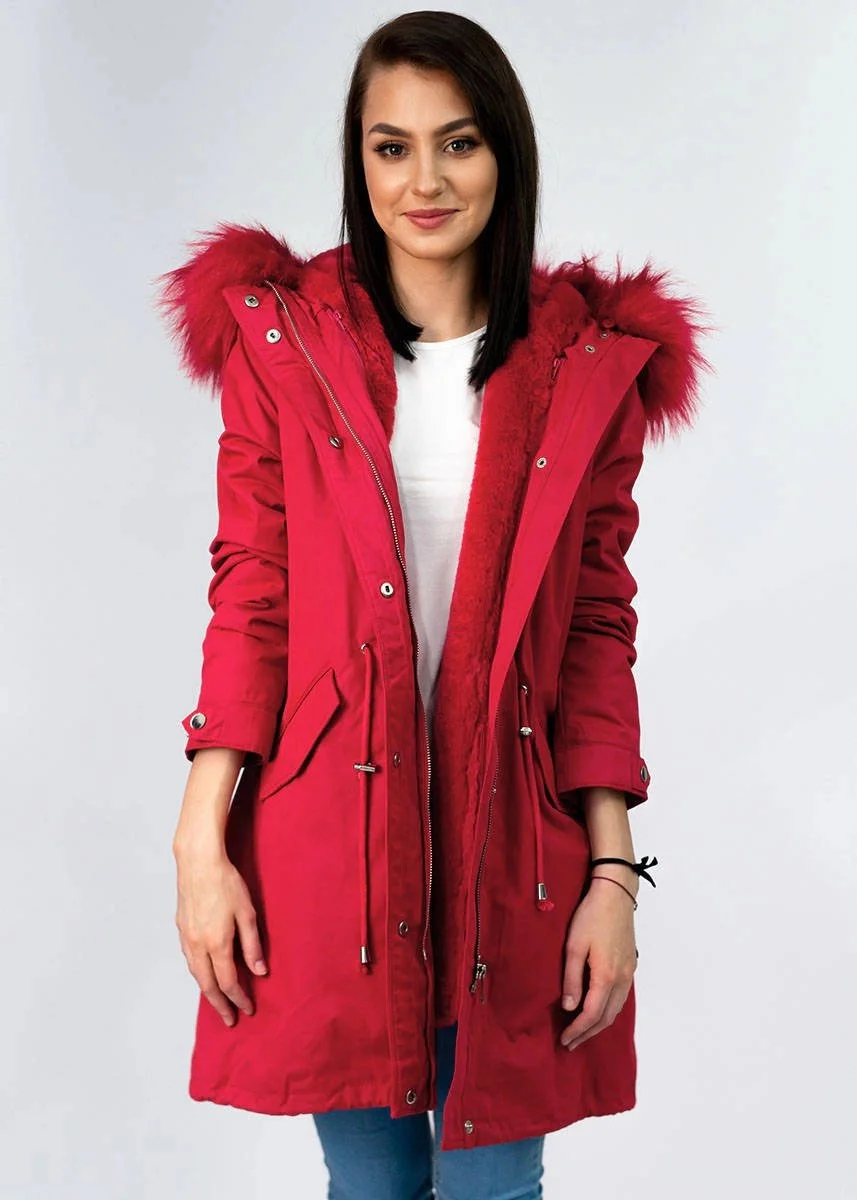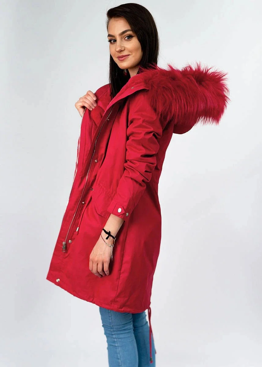 DAMSKA PARKA ZIMOWA Z I KAPTUREM CZERWONA model 21242000 - Libland