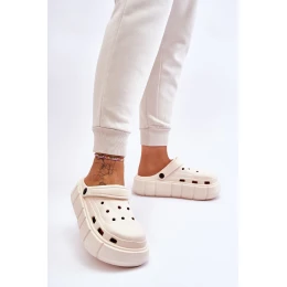 Dámské pantofle ve stylu croc jsou vyrobeny z pěnového materiálu. Pohyblivý popruh zabraňuje pohybu nohy. Boty byly postaveny na masivní platformě. Ideální model pro práci na zahradě nebo použití doma místo pantoflí. Otvory ve svršku umožňují správné odvětrávání obuvi, což je skvělé během teplejších dnů. Při výběru velikosti se řiďte tabulkou velikostí.
