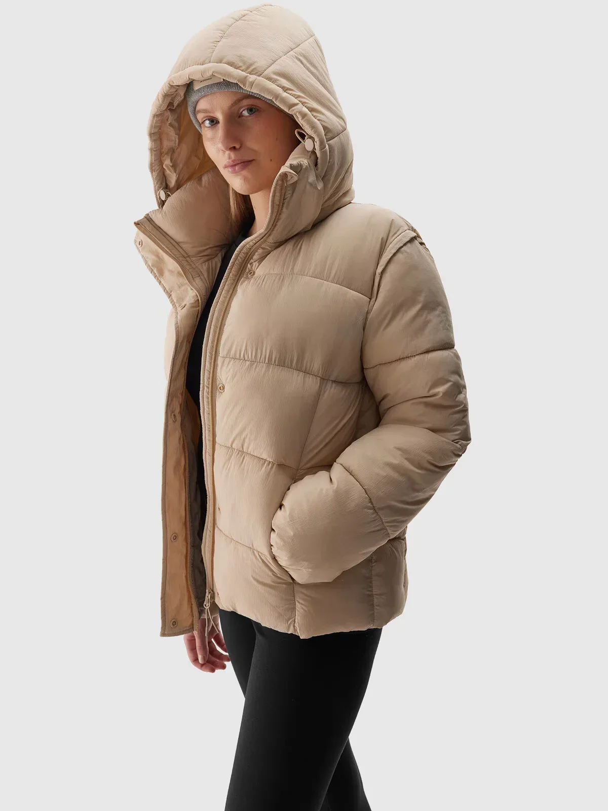 Dámská péřová bunda 4F se syntetickým peřím, které je odolnější a snadněji se udržuje než přírodní peří. I když je vystavena vlhkosti, déle si zachovává své izolační vlastnosti a mnohem rychleji schne. Navíc nevyžaduje složité praní a sušení.