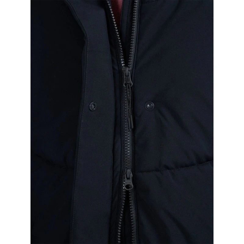 vodoodpudivá úprava účinně snižuje absorpci vlhkosti a zvyšuje odolnost tkaniny. Polyesterová izolace poskytuje teplo bez zbytečného objemu a snadno a rychle se udržuje. Integrovaná kapuce, dvoucestný zip a funkční kapsy zvyšují pohodlí při každodenním používání. Nastavitelný pas zlepšuje padnutí a tepelný komfort, zatímco volný oversize střih zaručuje volnost pohybu.