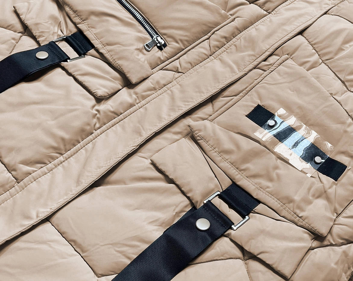 Přidání recenze k Dámská péřová bunda ve velbloudí barvě s ozdobnými páskami (AG2-J85)