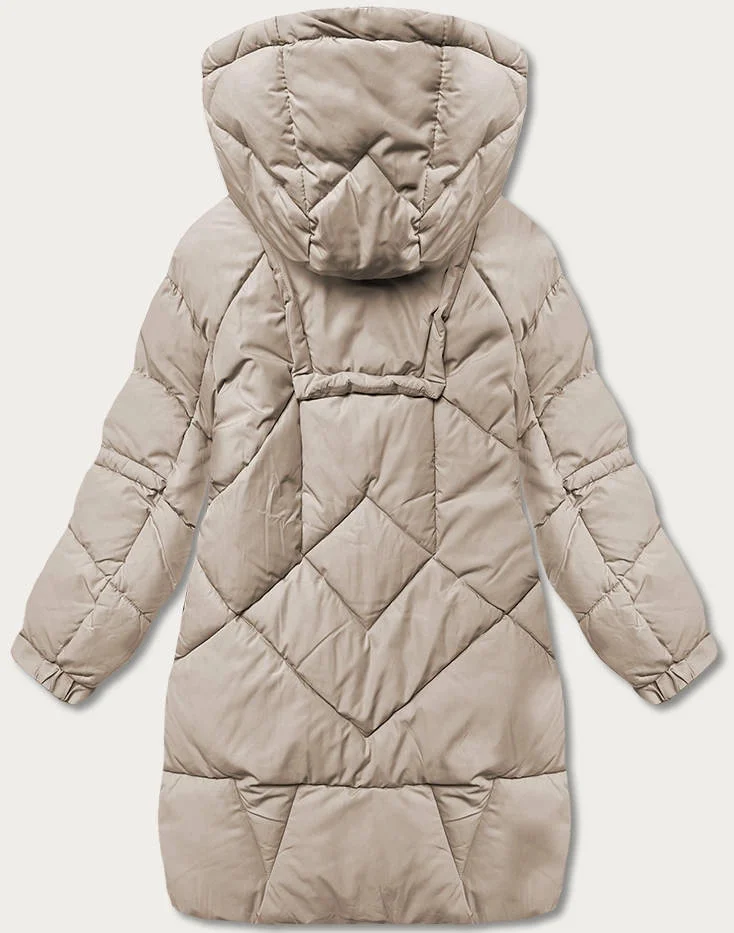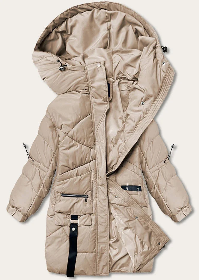 Dámská péřová bunda ve velbloudí barvě s ozdobnými páskami (AG2-J85)