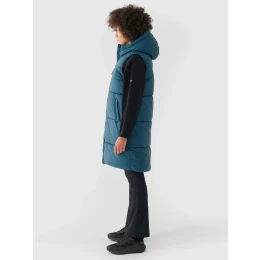 Dámská dlouhá vesta se syntetickým peřím, které je odolnější a snadněji se udržuje než přírodní peří. I když je vystavena vlhkosti, déle si zachovává své izolační vlastnosti a mnohem rychleji schne.
