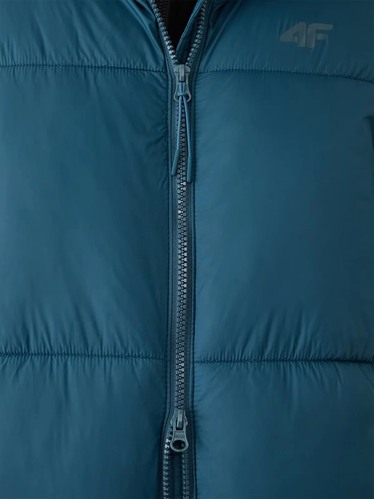Na bocích jsou 2 otevřené kapsy. Dámská péřová vesta se zapíná na dvoucestný hlavní zip a je vybavená vnitřní větruodolnou légou, která omezuje pronikání chladu dovnitř bundy.
