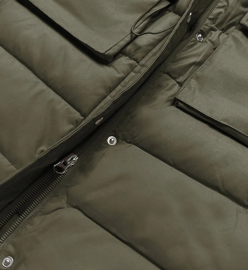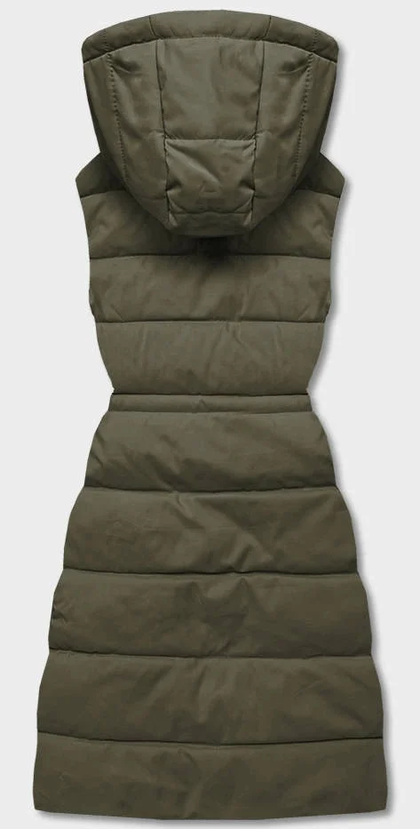 Dámská péřová vesta v army barvě s kapucí (CAN-860)