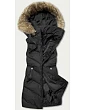 Dámská péřová vesta v army barvě s kožešinou (5M787-136)