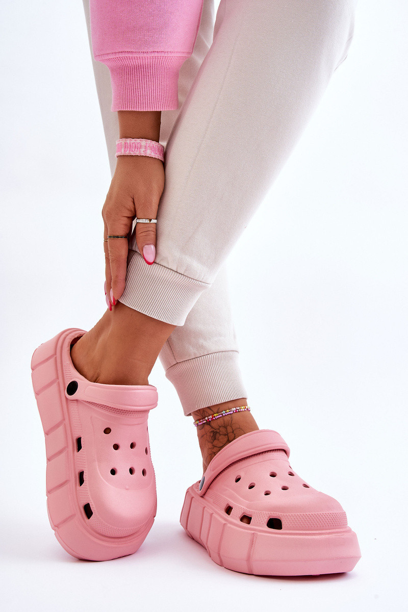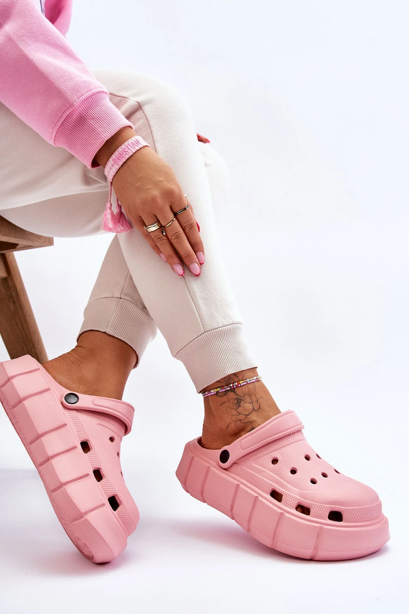 Dámské pantofle ve stylu croc jsou vyrobeny z pěnového materiálu. Pohyblivý popruh zabraňuje pohybu nohy. Boty byly postaveny na masivní platformě. Ideální model pro práci na zahradě nebo použití doma místo pantoflí. Otvory ve svršku umožňují správné odvětrávání obuvi, což je skvělé během teplejších dnů. Při výběru velikosti se řiďte tabulkou velikostí.