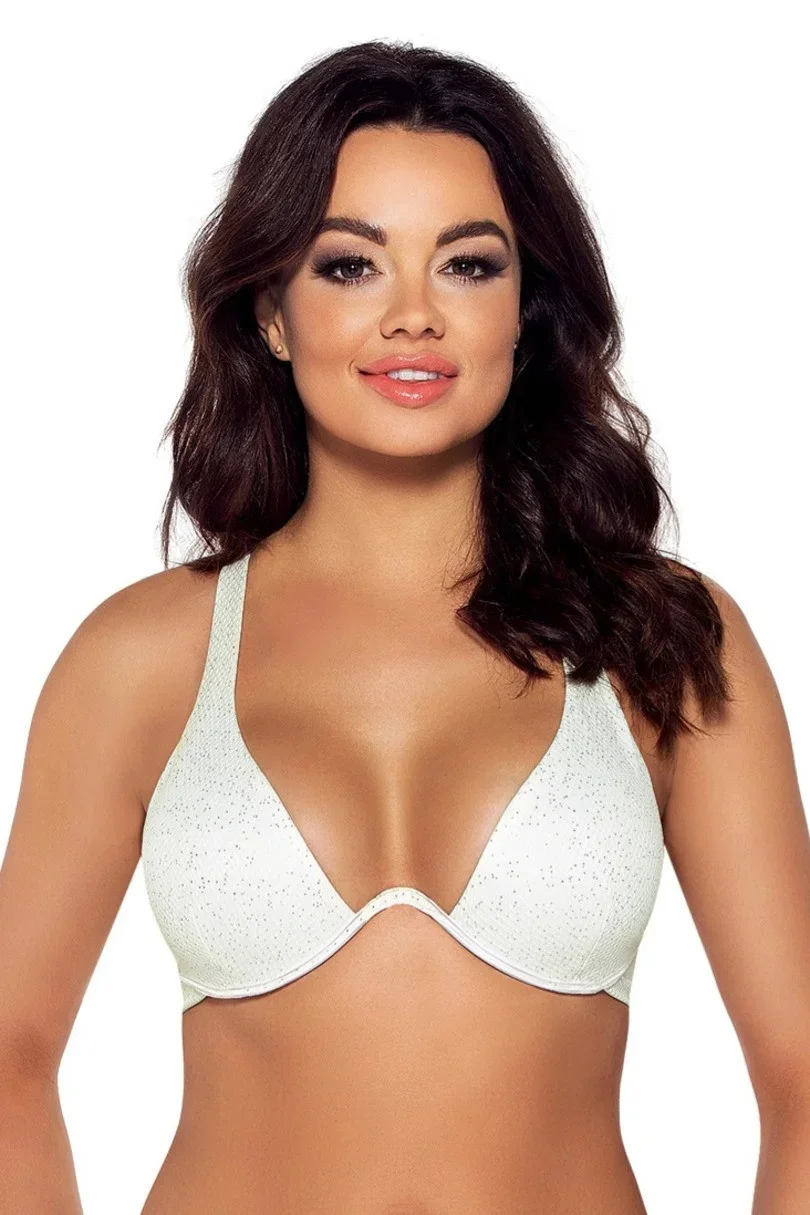 Nezvykle odvážný a podmanivě sexy model SK 162 strój je ideální pro horké prázdninové klima. Měkké košíčky s kosticemi jemně zvedají a podpírají prsa a smyslně zvýrazňují dekolt. Elastický vázaný obvod udržuje podprsenku na místě a odepínací ramínka umožňují jejich překřížení na zádech. Krémová pletenina s texturou vypadá na těle krásně a zvýrazňuje opálení třpytivými zlatými konfetami.