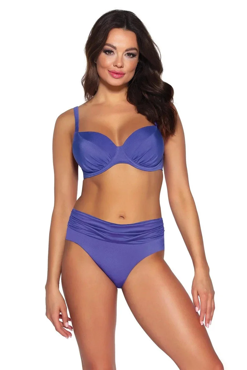 Úžasná barva ušlechtilé fialové si zaslouží být hrdě vystavena. Tato klasická plavková podprsenka s plnými košíčky a jemným řasením ve spodní části košíčků se dobře postará o vaše prsa; shromáždí je, pozvedne a stabilizuje poprsí, aniž by zatěžovala vaše záda a paže. Pružný úplet s mírným leskem působí neskutečně, takže strój nepotřebuje žádné další ozdobyób. Kompozici spójive doplňují kalhotky SF 169/3/1 s vysokým pasem a řaseným panelem, který zakrývá případné nedostatky.