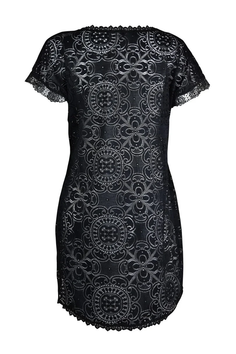 Dámská plážová košilka - šaty, které jsou vyrobené z bohatě zdobeného materiálu.