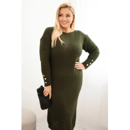 Dámská pletená šaty Plus Size s model 21393352 khaki - K-Fashion
