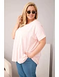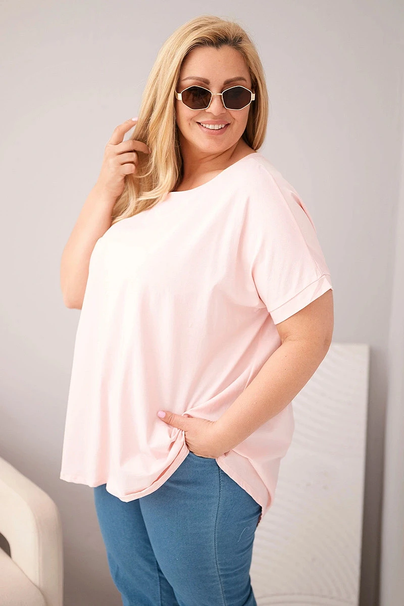 Dámská plus size bavlněná halenka s krátkým rukávem bonbónově růžová