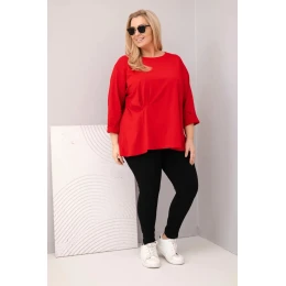 Dámská plus size blůza s bavlnou, dlouhým rukávem a řasením červená