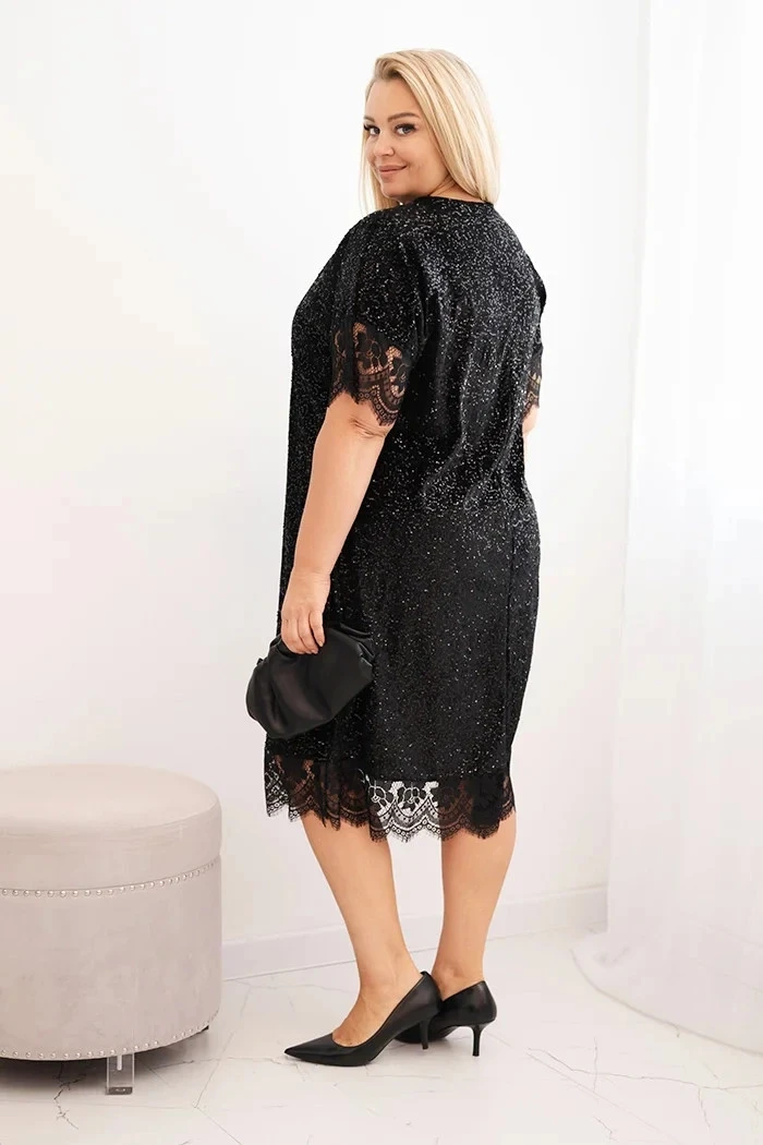 3. Dámská Plus Size šaty s flitry a krajkovým model 21486188 černá - K-Fashion