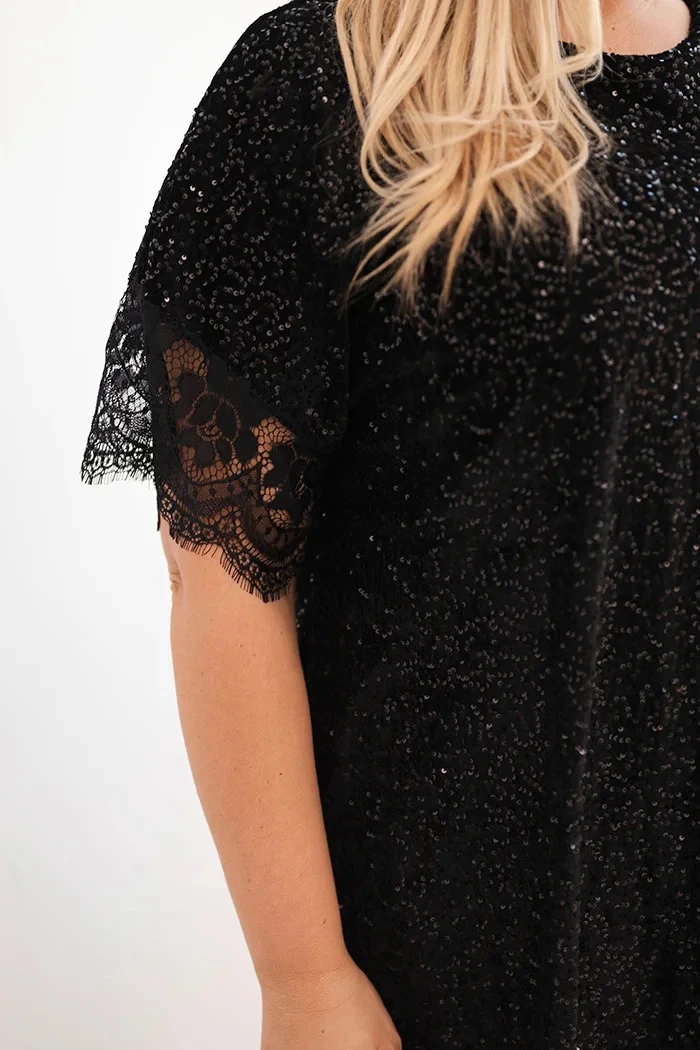 • Dámská Plus Size šaty s flitry a krajkovým model 21486188 černá - K-Fashion