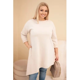 Dámská PLUS SIZE šaty z viskózy s volným střihem a dlouhým rukávem béžová