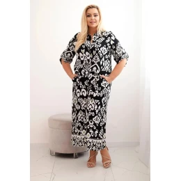 Dámská plus size viskózová souprava s geometrickým potiskem černý