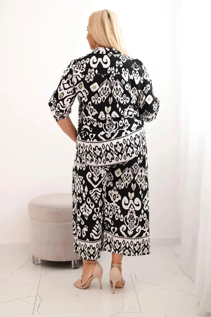 Dámská plus size viskózová souprava s geometrickým potiskem černý