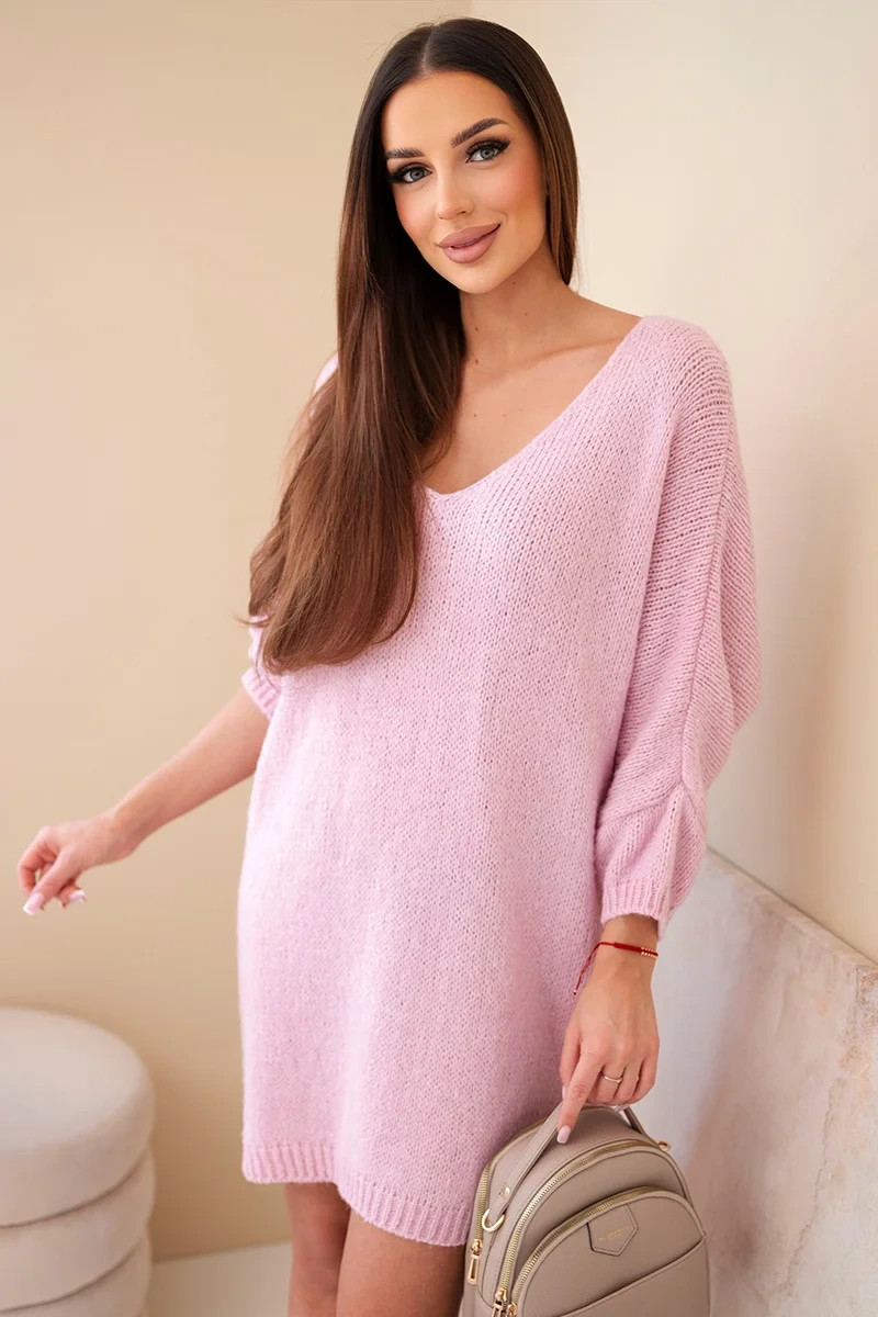 • Dámská plus size vlněná šaty s výstřihem do V světle růžová