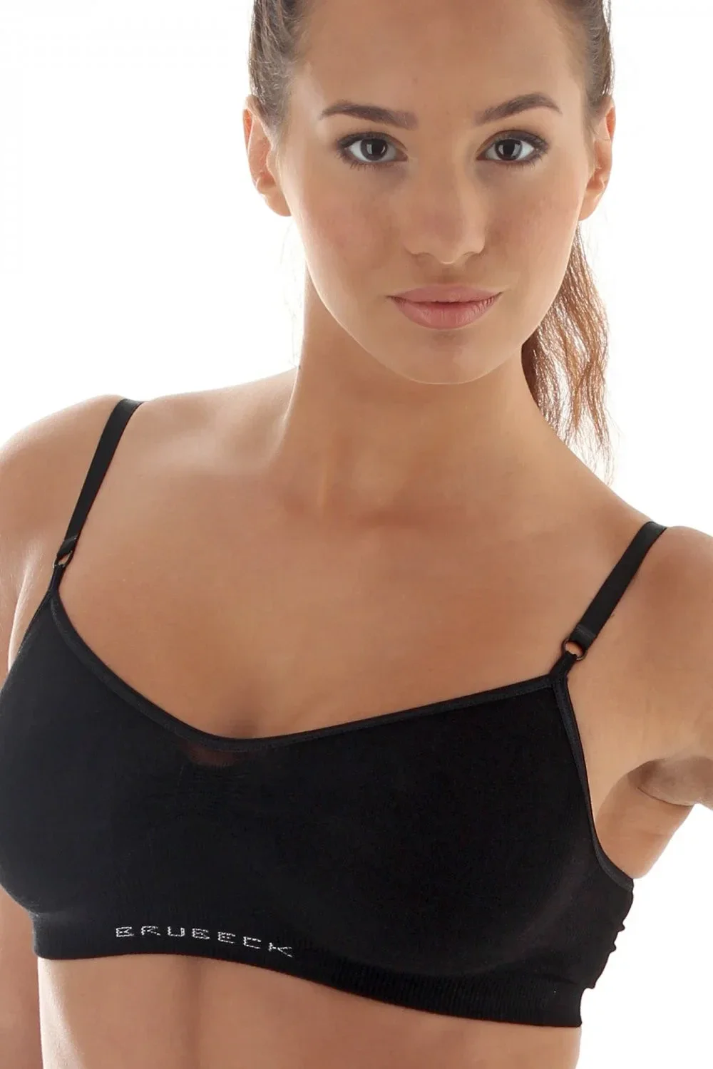 Bavlněná bezešvá podprsenka 00012 Brubeck - vyrobená z velmi příjemné bavlny. - profilované košíčky - bez bočních švů - velká elastičnost a lepší odvod vlhkosti - jednoduché nastavení ramínka - Ideálně přiléhá k tělu a je velmi pohodlná - bezešvé prádlo určené především na sportovní aktivity - firma Brubeck BodyGuard se zabývá výrobou oblečení pro extrémní sporty a využívá nejnovější technologie