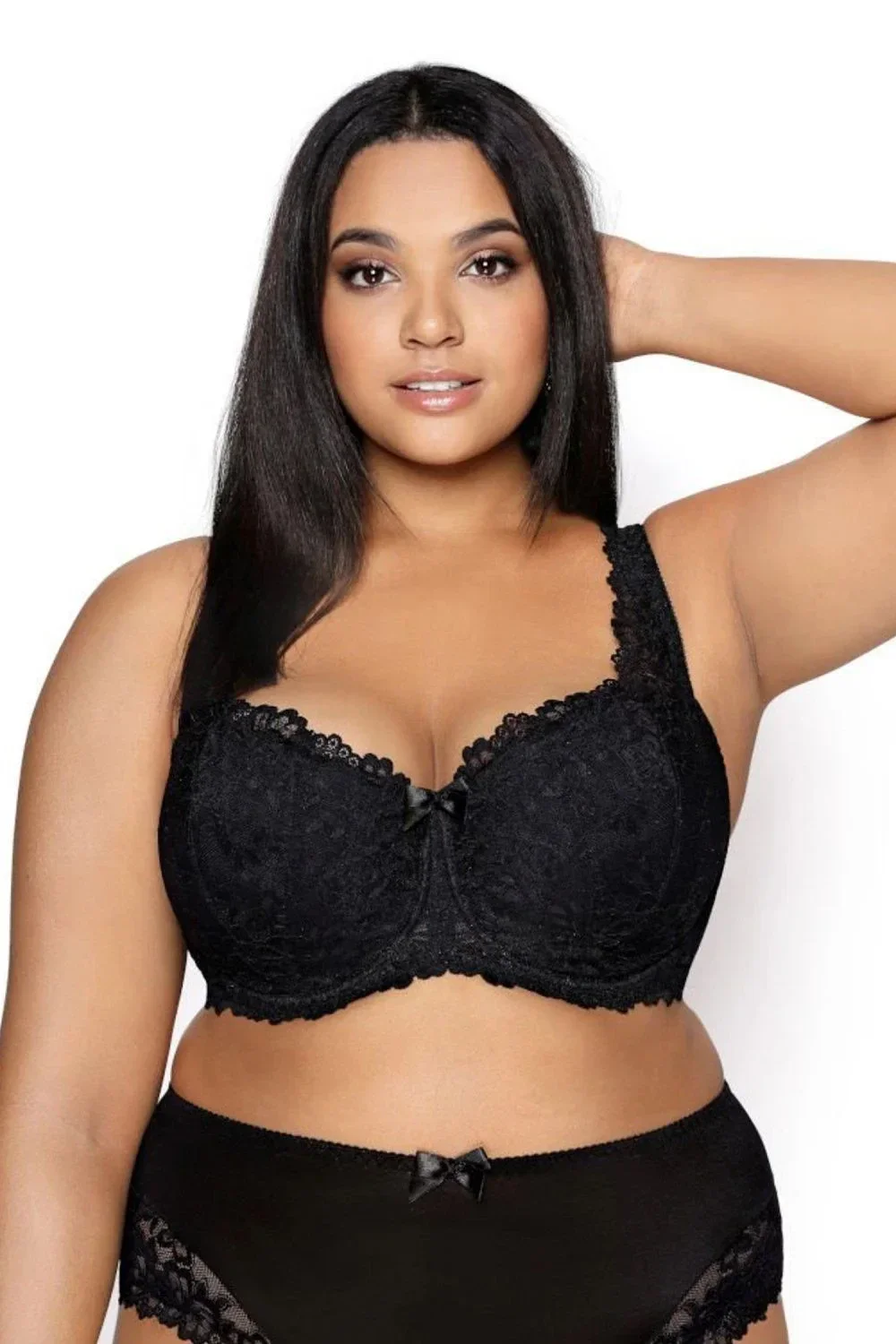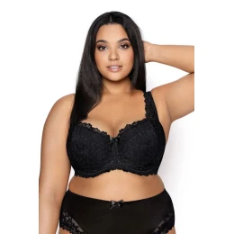 Dámská podprsenka 053/22 Carmela black plus MAT - černá barva - z krajky s květinovým motivem - vyztužená - vnitřní strana košíčků podšitá bavlnou - boční části s kosticí - nastavitelná a neodepínatelná krajková ramínka - nadzvedává a přidržuje poprsí