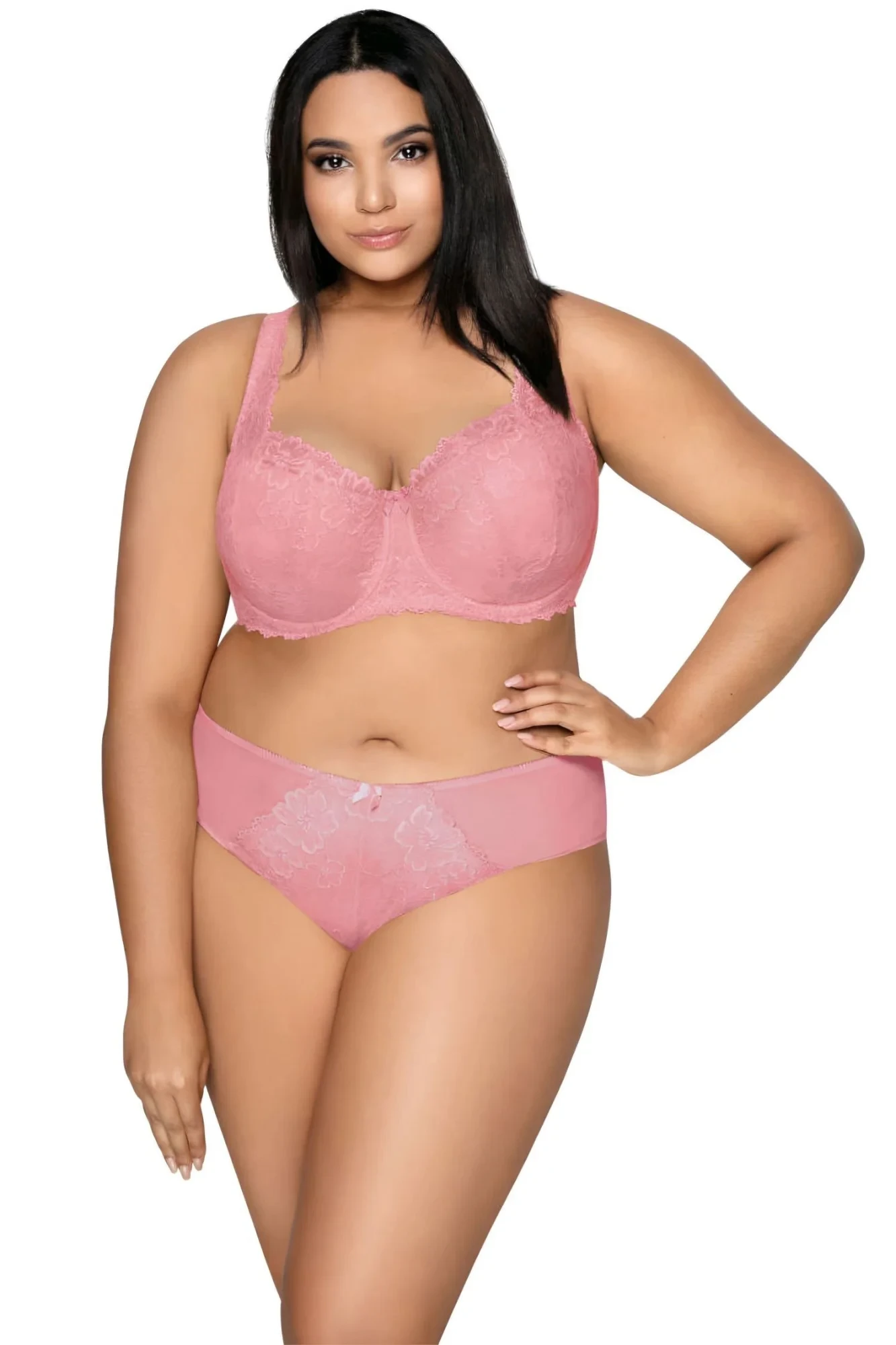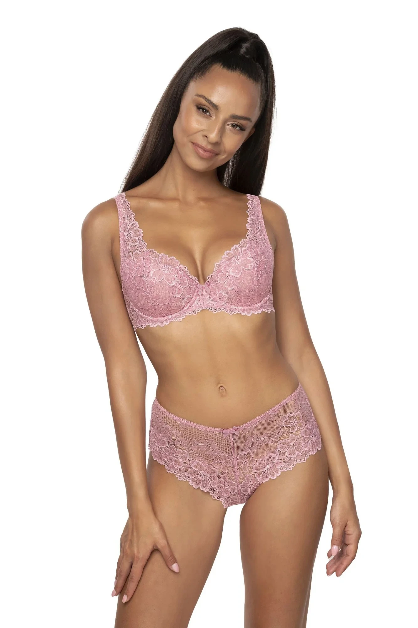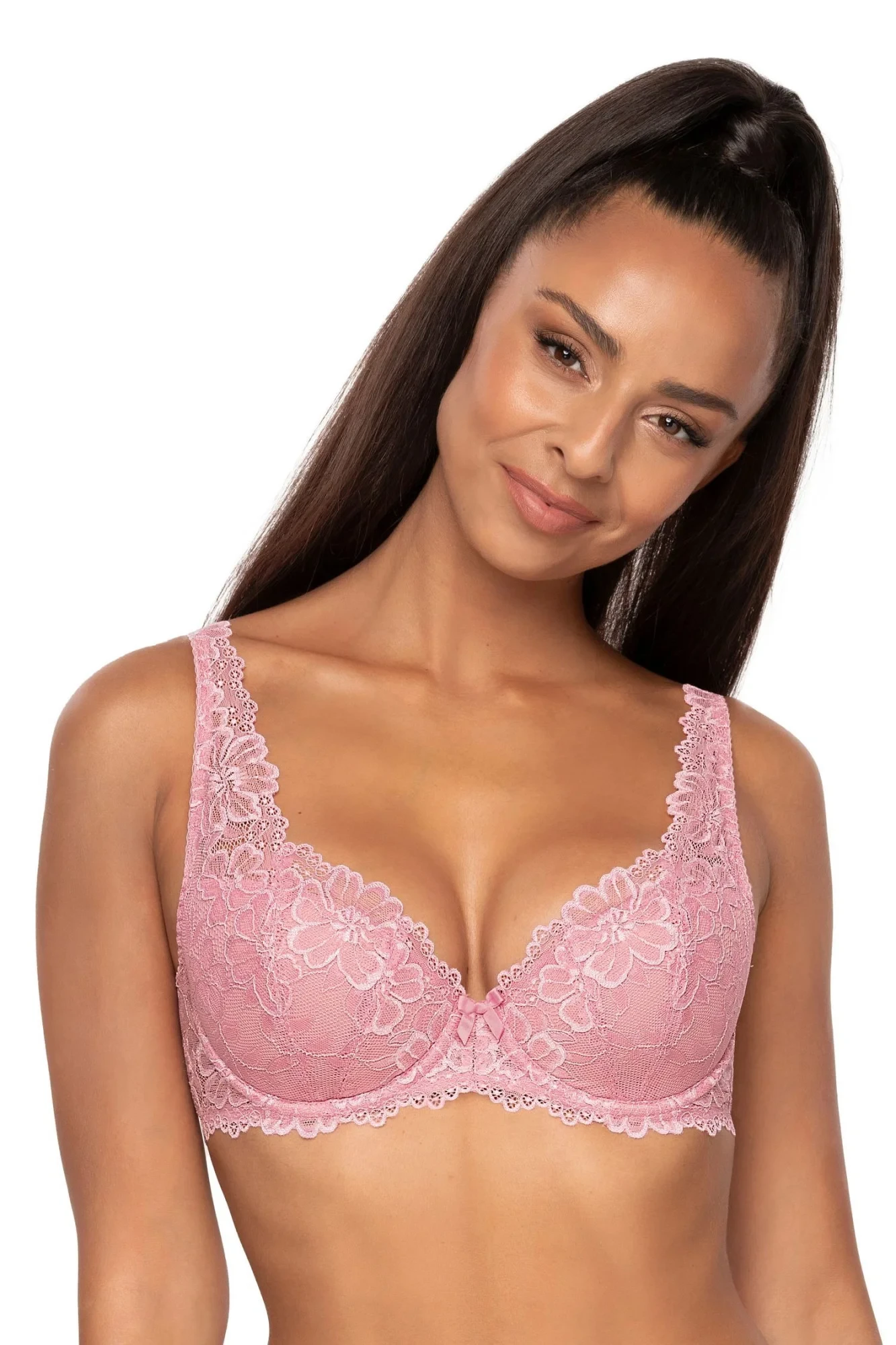 Dámská podprsenka 053/22 Carmela pink MAT - růžová barva - z krajky s květinovým motivem - vyztužená - vnitřní strana košíčků podšitá bavlnou - boční části s kosticí - nastavitelná a neodepínatelná krajková ramínka - nadzvedává a přidržuje poprsí
