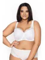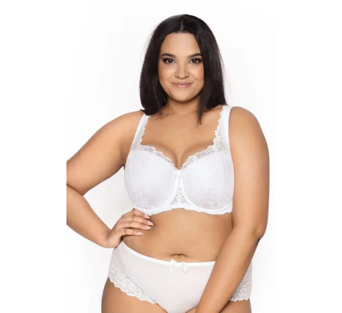 Dámská podprsenka 053/22 Carmela white plus MAT - bílá barva - z krajky s květinovým motivem - vyztužená - vnitřní strana košíčků podšitá bavlnou - boční části s kosticí - nastavitelná a neodepínatelná krajková ramínka - nadzvedává a přidržuje poprsí