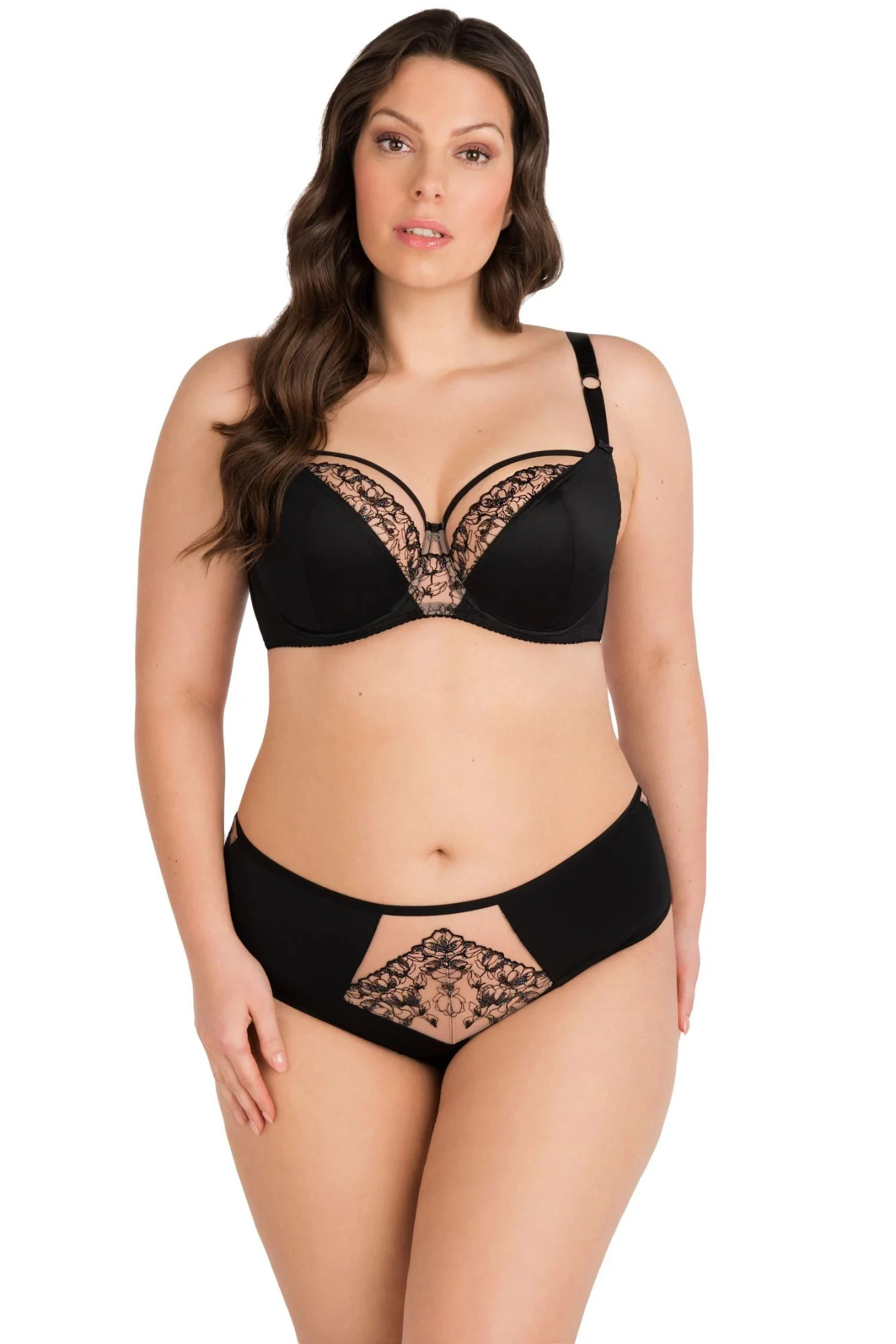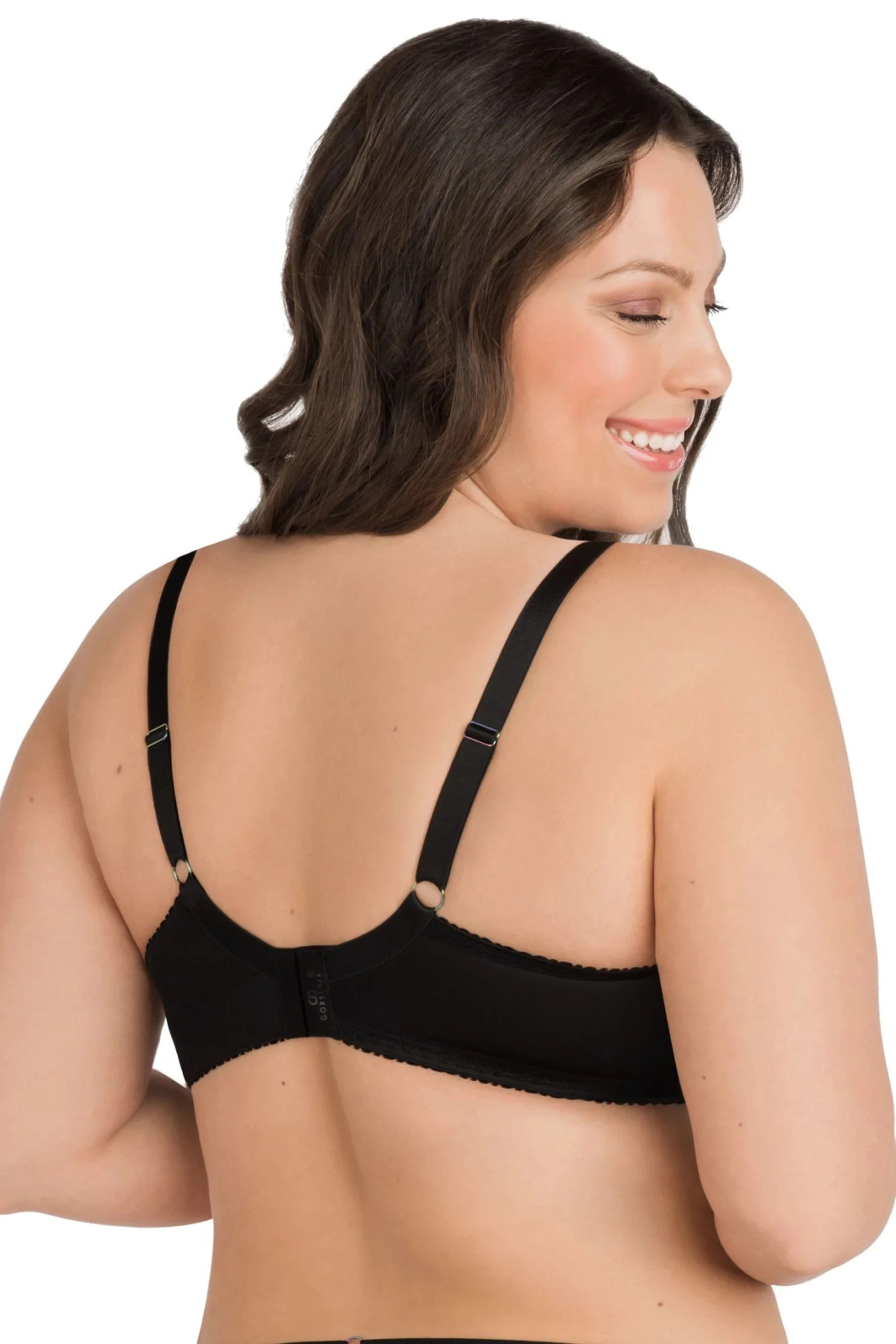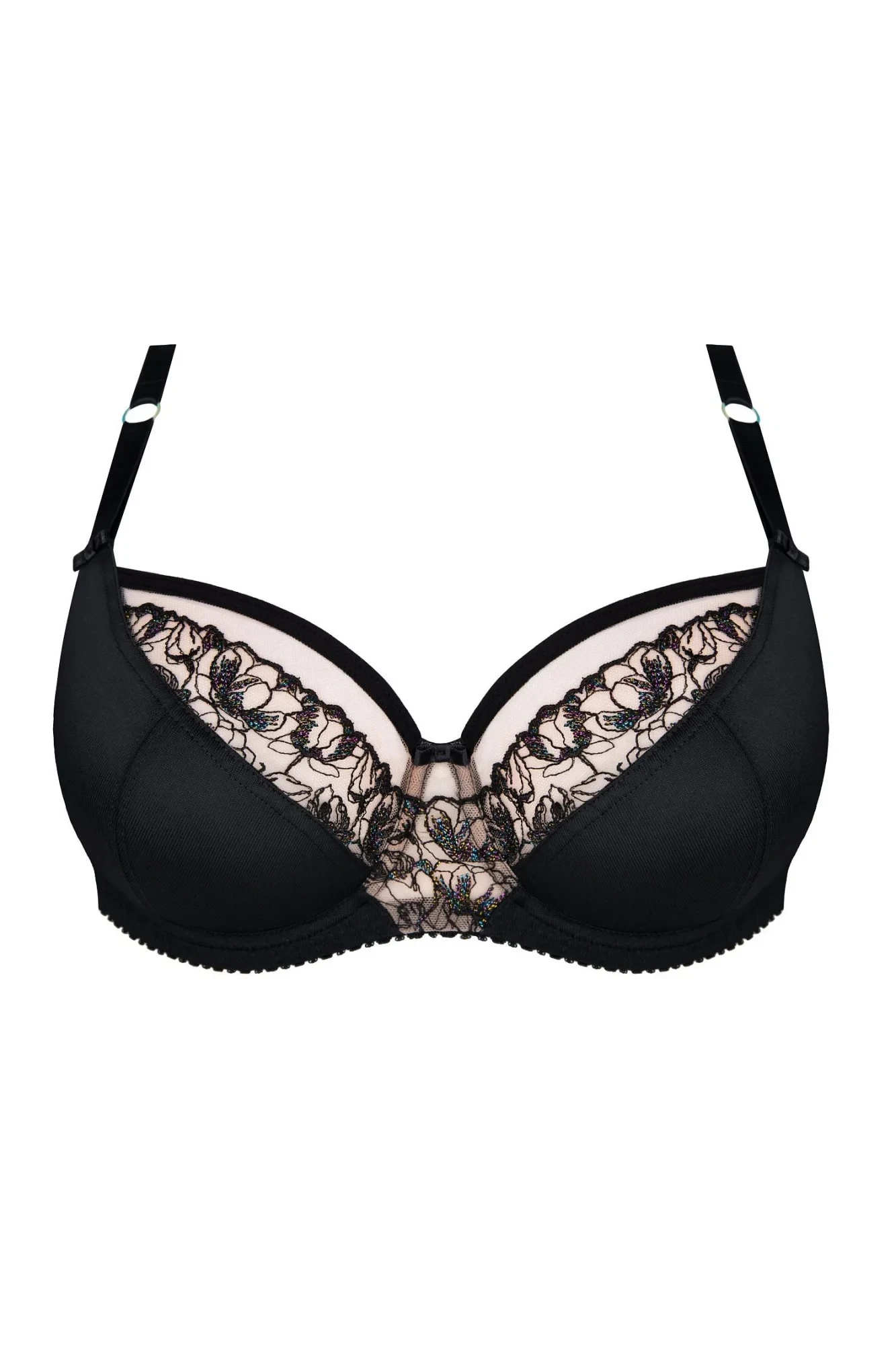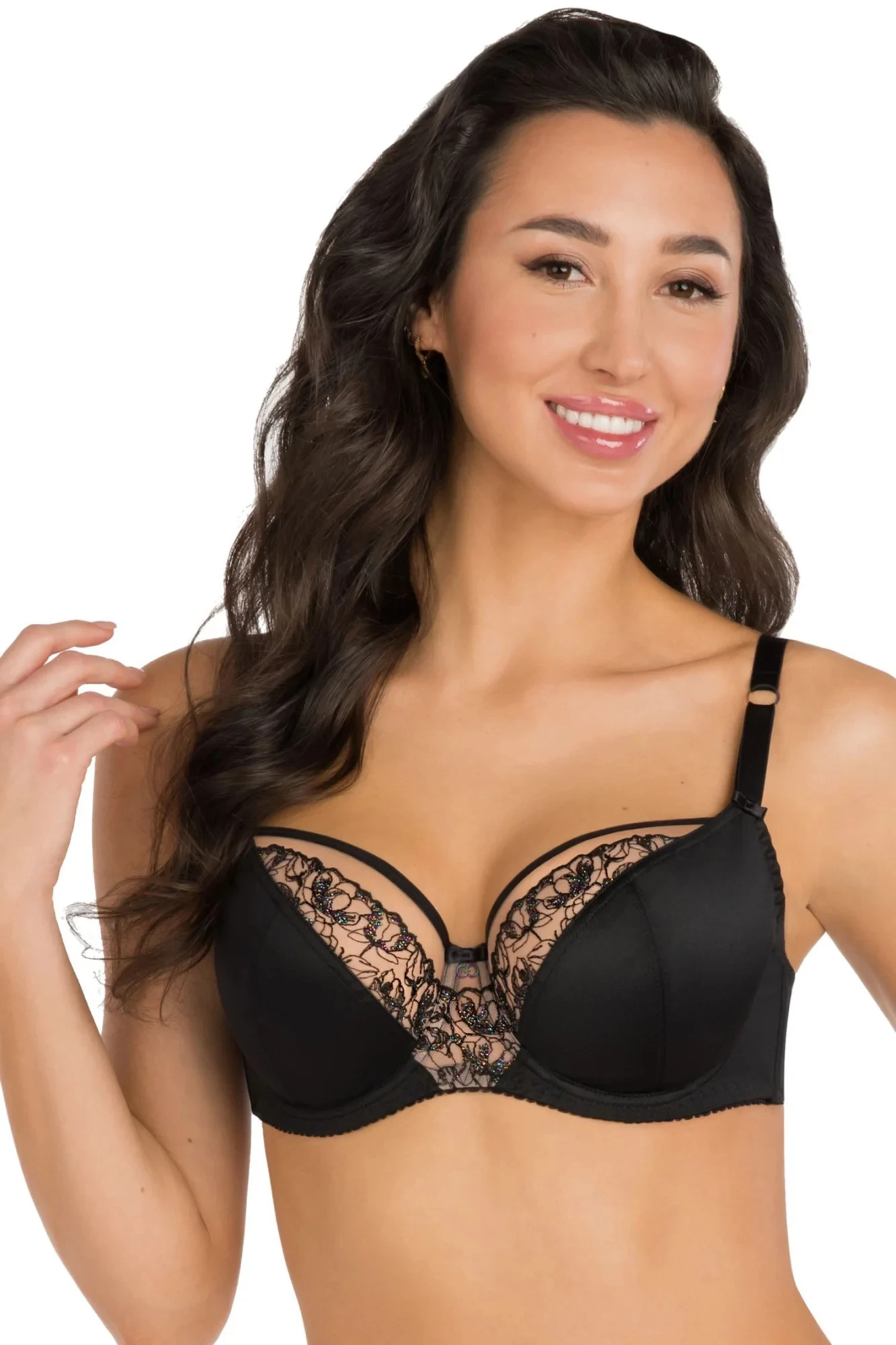 Dámská podprsenka 101 Zoya GORSENIA - černá barva - vyztužená podprsenka - krajkové košíčky podšité bavlnou - s kosticemi - obvod ze síťovaného tylu - ramínka nastavitelná a odepínatelná