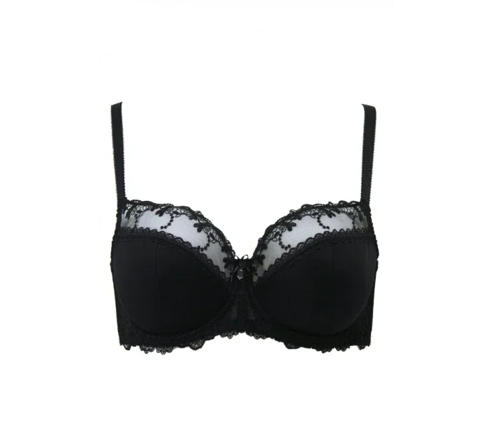 Dámská podprsenka 1030 Novato black plus AVA - černá barva - typ semi soft - košíčky z hladkého mikrovlákna - horní část zdobená krajkou - zpevněné kosticí - ramínka neodepínatelná - zapínání na dva nebo tři háčky s třístupňovým nastavením