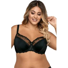 Dámská podprsenka 1030 Novato black plus AVA - černá barva - typ semi soft - košíčky z hladkého mikrovlákna - horní část zdobená krajkou - zpevněné kosticí - ramínka neodepínatelná - zapínání na dva nebo tři háčky s třístupňovým nastavením