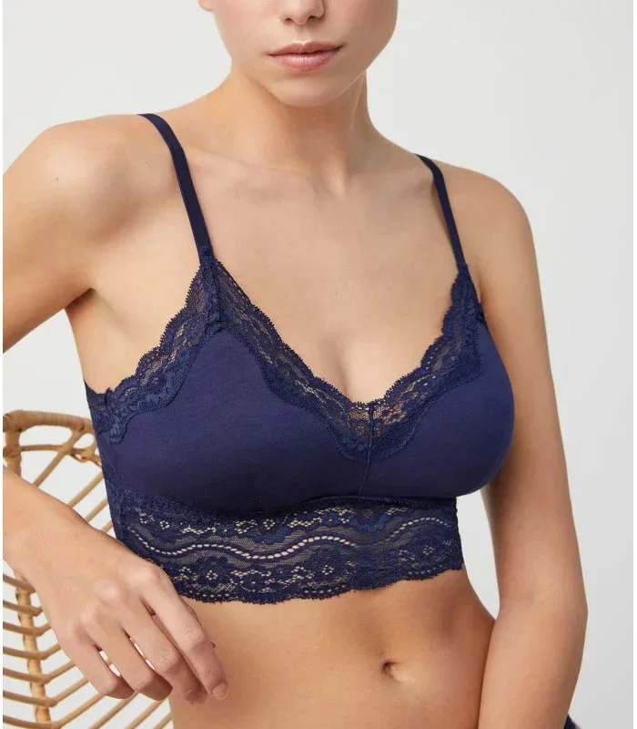 Dámská podprsenka nevyztužená, bez kostic, s luxusní krajkou. Ramínka na posouvání.
