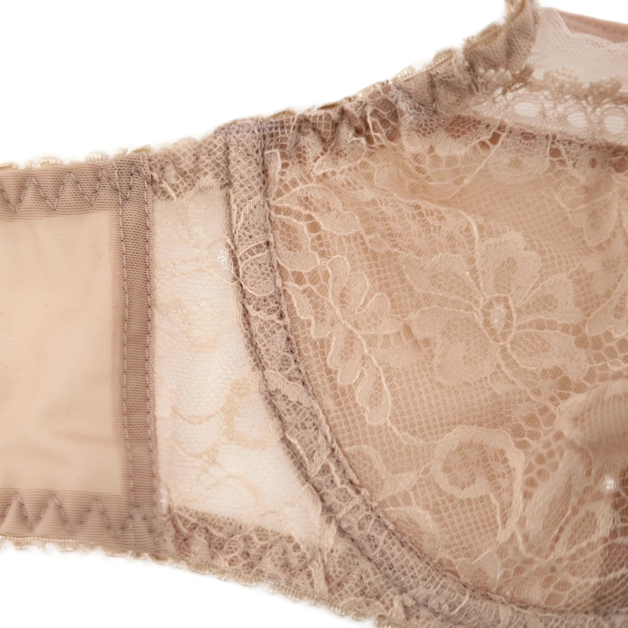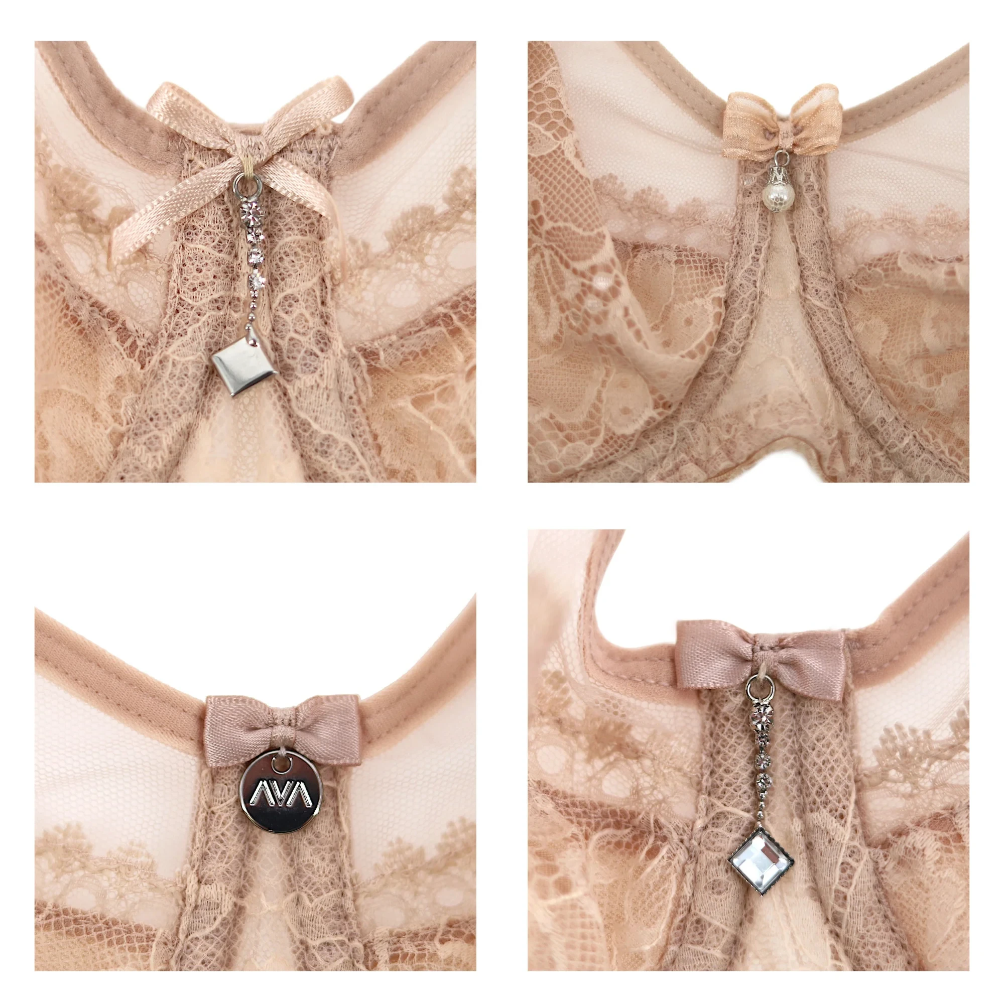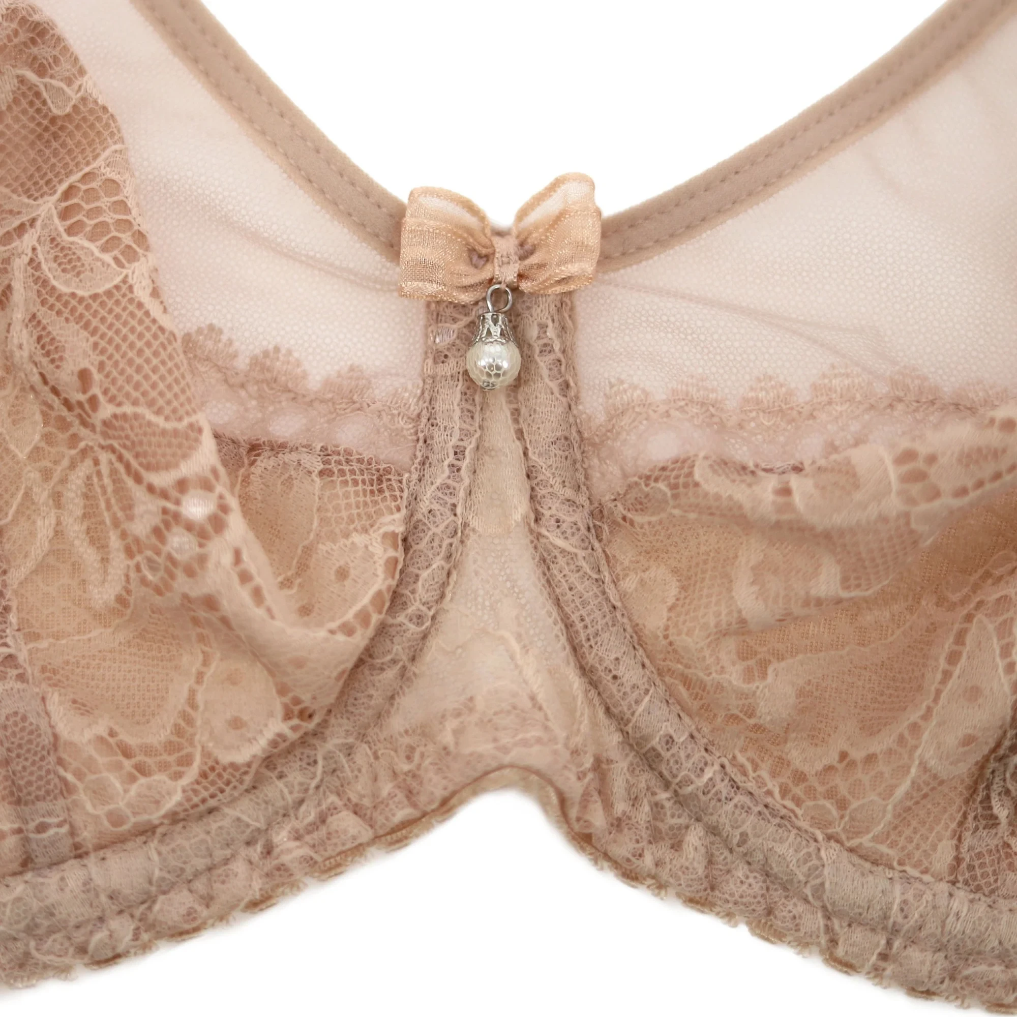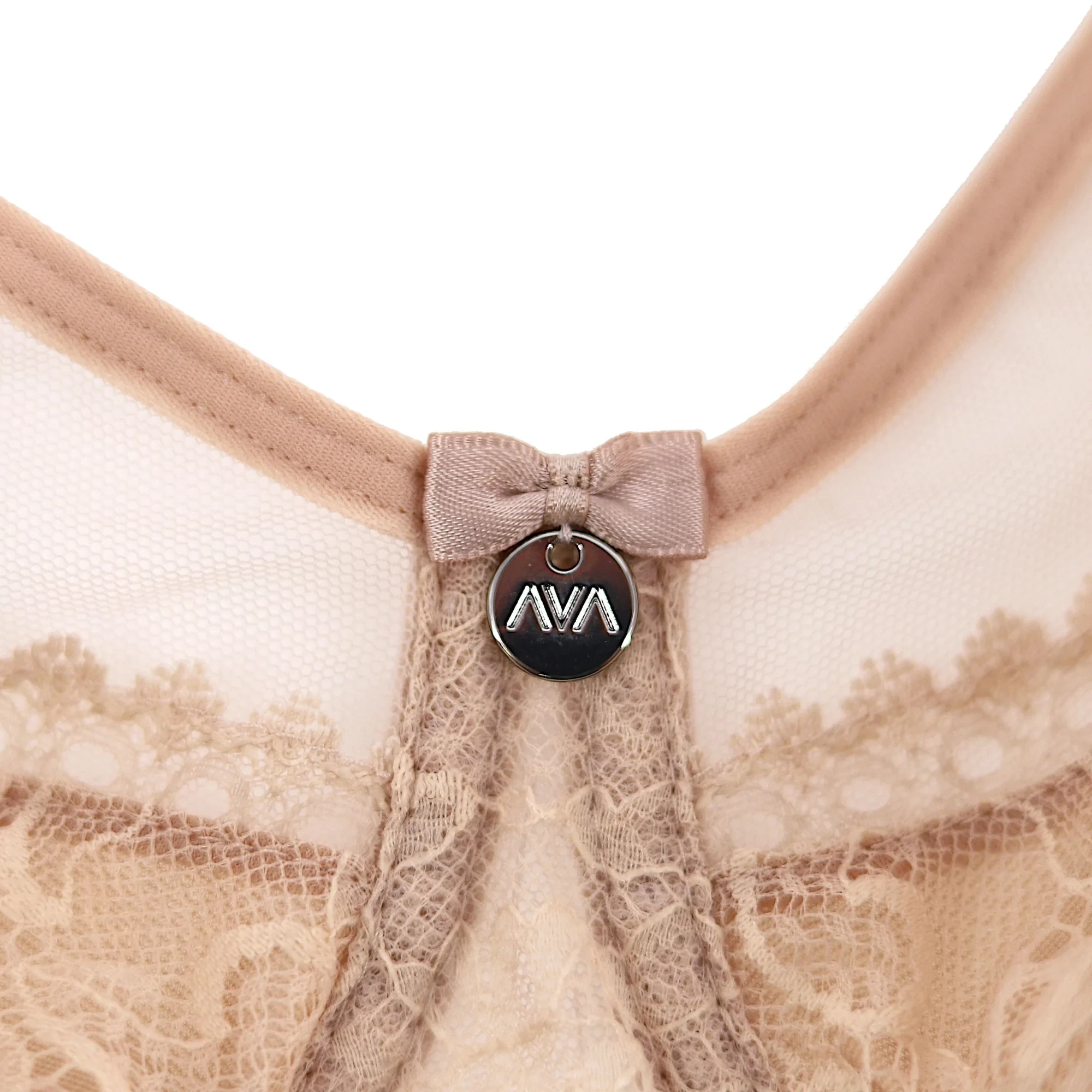 Dámská podprsenka 1396 Crystal beige AVA - béžová barva - horní část košíčků je vyrobená z jemné síťoviny - košíčky a střed podprsenky jsou pokryté svůdnou krajkou - dolní část košíčků je zesílená síťovinou - zadní díl je vyrobený z pružné síťoviny - mezi košíčky je umístěna mašlička se stylovou ozdobou - podprsenka má svislé boční kostice - ozdobná ramínka je možné nastavit, ale nelze je odepnout
